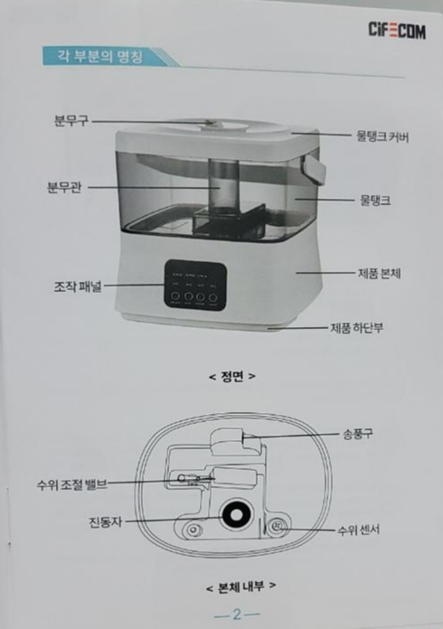 사용 설명서에는 각 부분의 명칭과 , 청소법이 쓰여있었어요