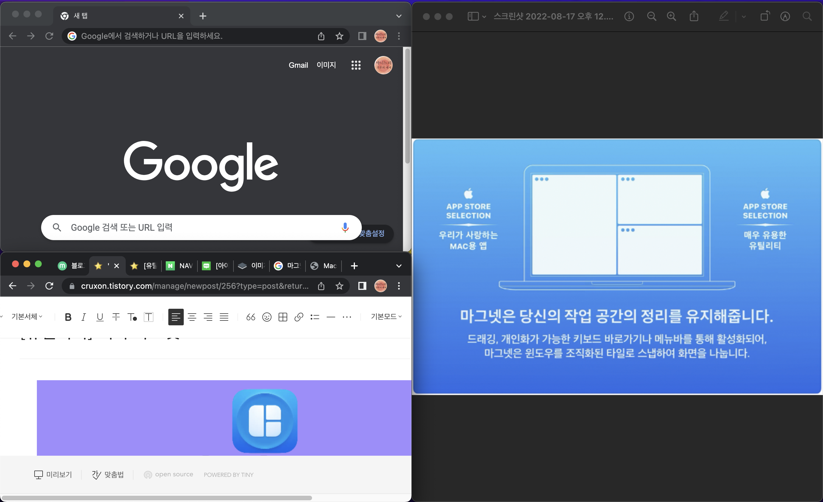비슷한 무료 프로그램도 있습니다. 하지만 설정도 해야하고 다소 불편해서 마니는 마그넷을 사용하고있어요.