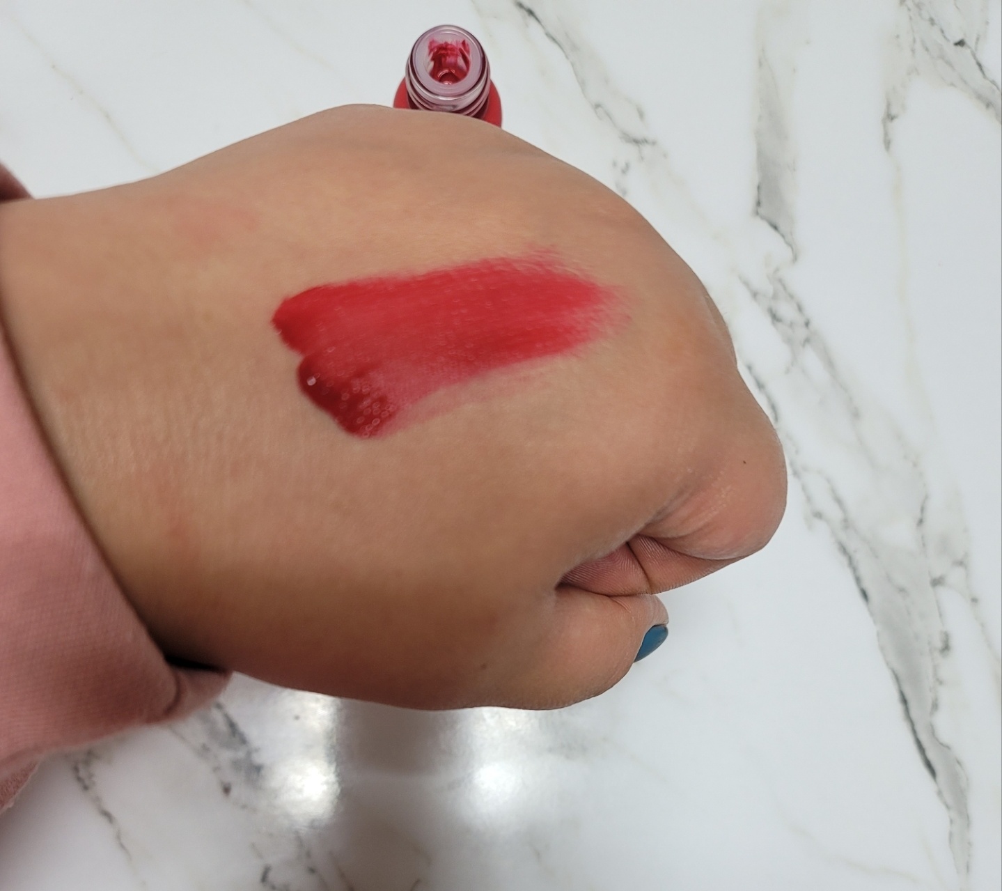 오른쪽 사진은 손등 발색 촬영 후 바로 지운 건데 역시... 명성에 걸맞게 착색력이 어마어마하네요 ㅎㅎ