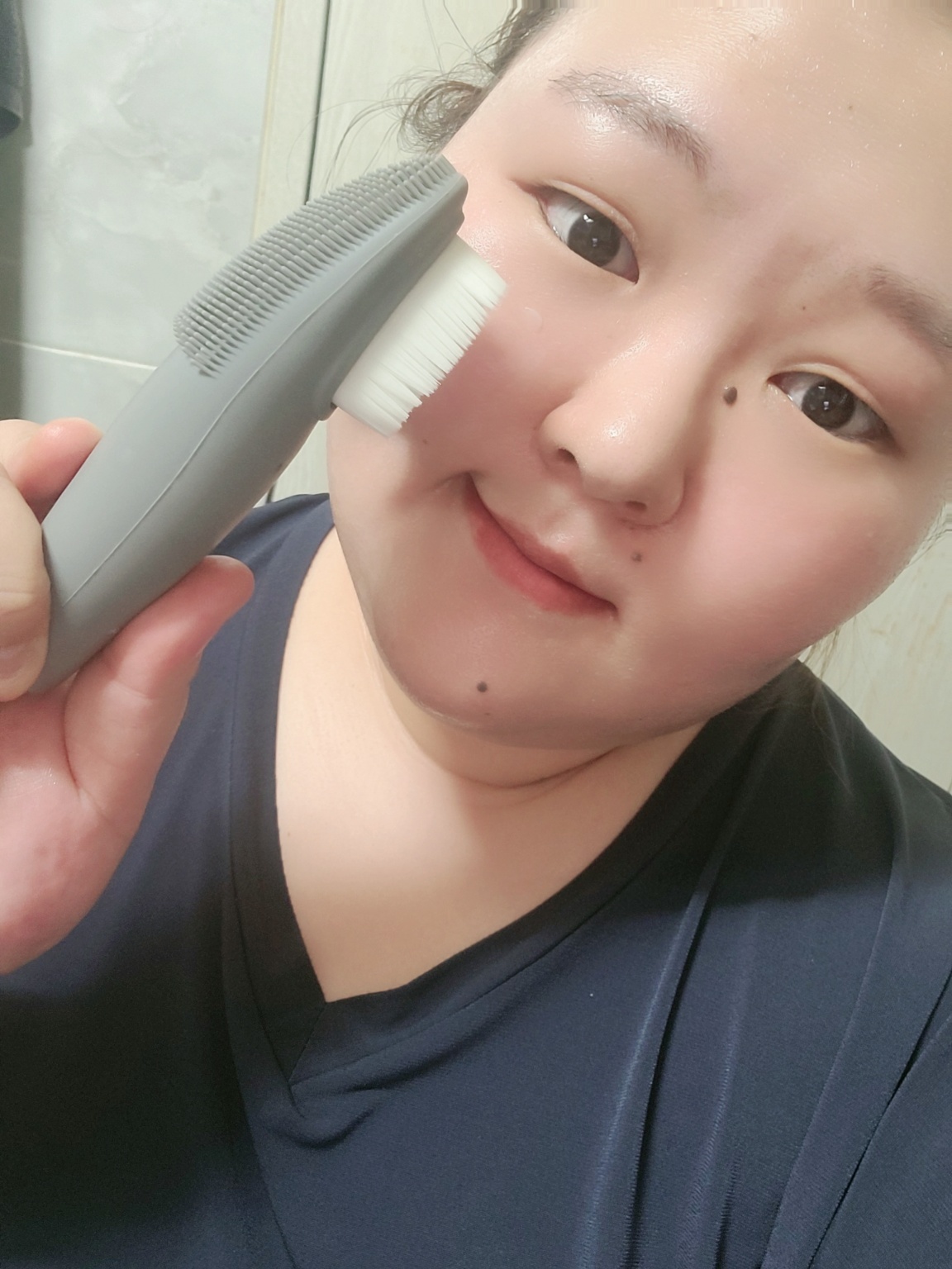 일반브러시로 먼저 해준뒤 실리콘 브러쉬로 양볼, 코, 미간, 턱 블랙헤드와 화이트 헤드가