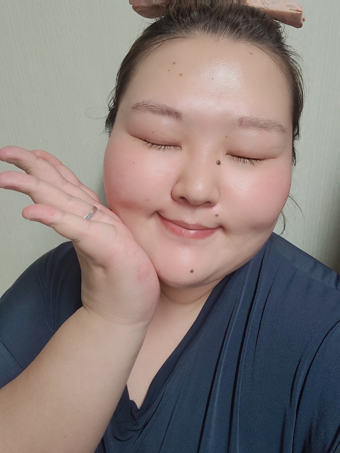 저는 양볼, 이마, 턱에 밤을 붙여주고 일단 두 손가락으로 롤링하여 줍니다.