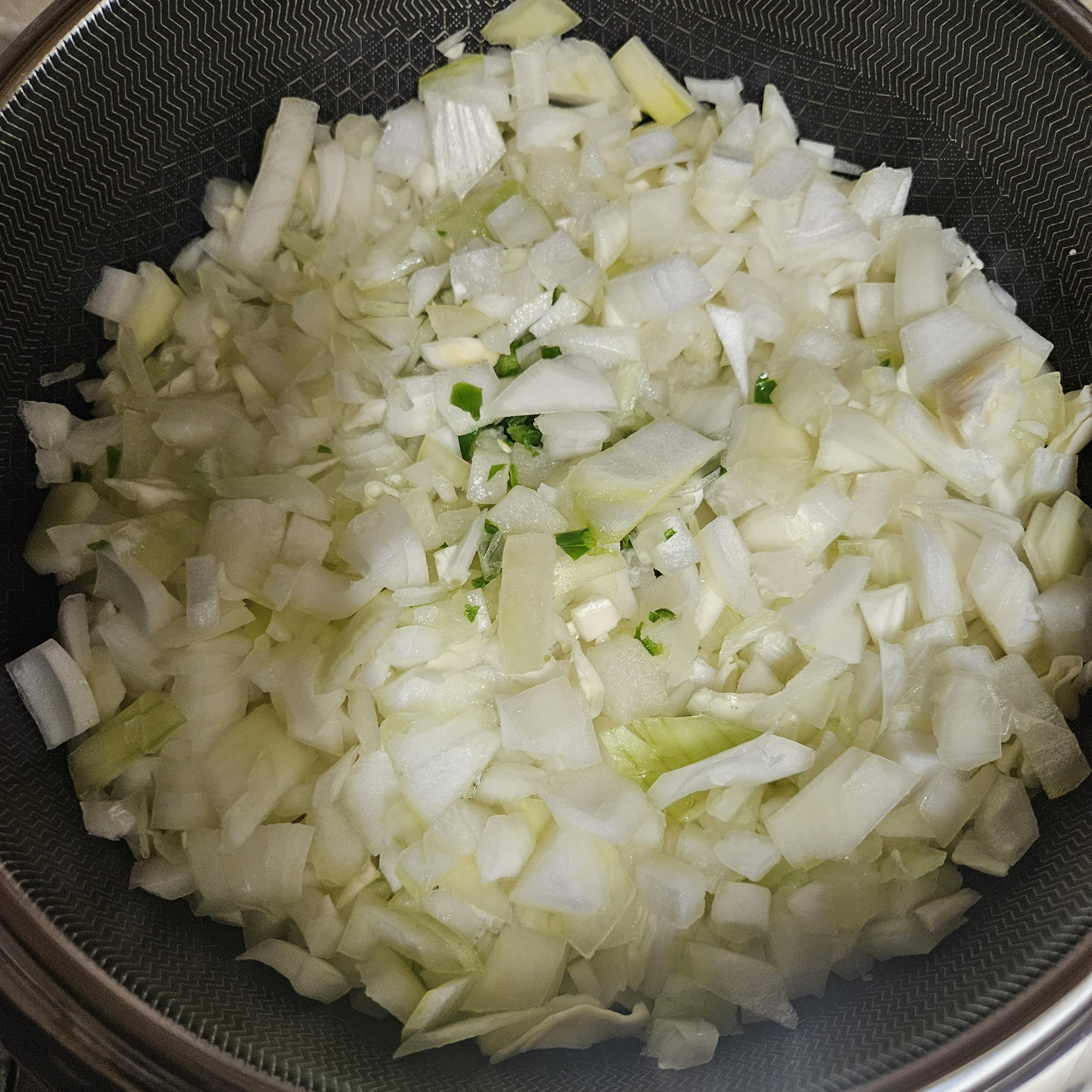 2. 양배추 반통 , 양파 2개, 무 반절,청양고추 3개를 청양고추 제외하고 작게 깍뚝썰어 준비하고 청양고추는 다져서 준비해줍니다.