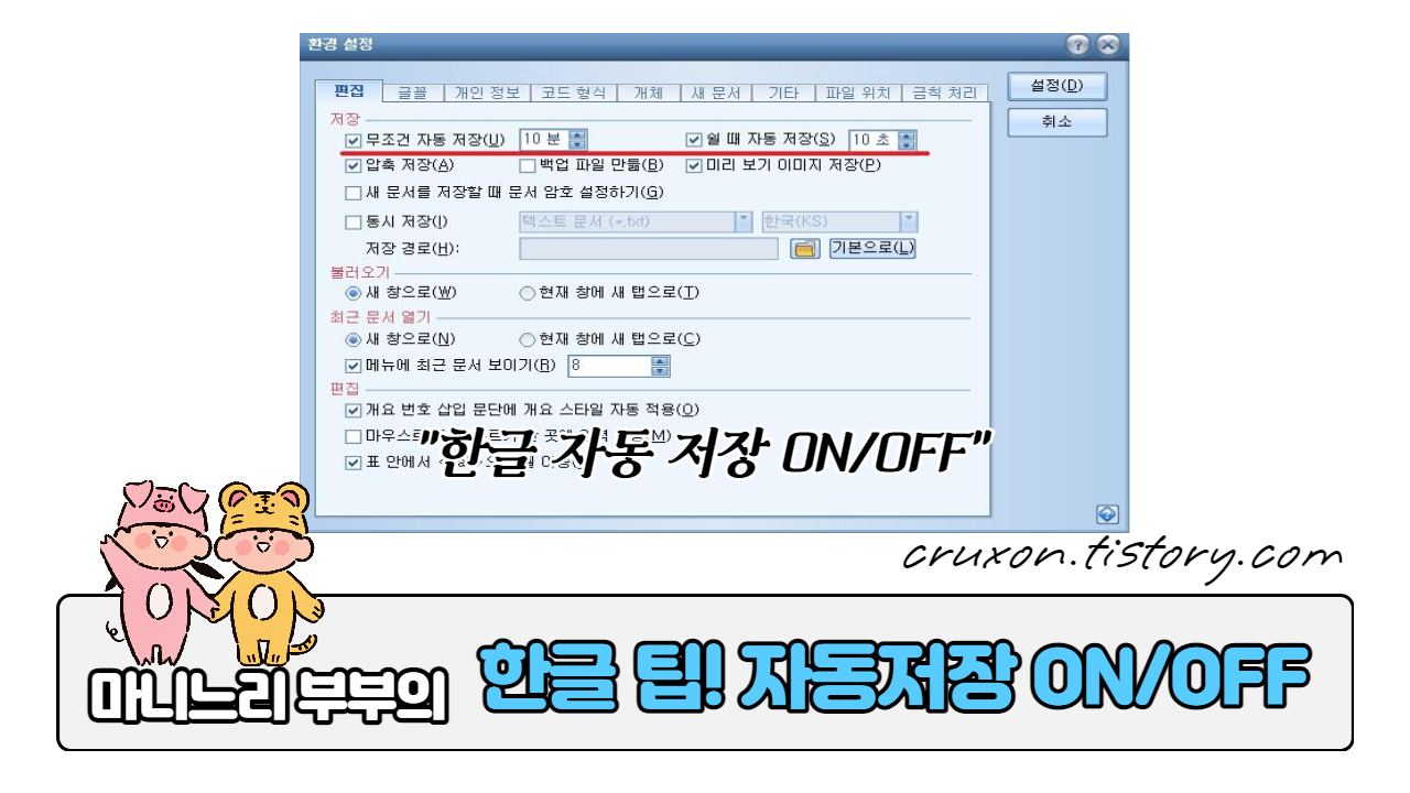따라해보자! 한글 자동저장 ON/OFF 설정